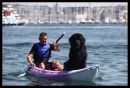 Watersport enthusiast Dave Stewart's regular kayaking trips along the River Tamar, Plymouth, often cause a bit of a splash - as he takes to the water accompanied by his giant 55kg Newfoundland dog Shadow.