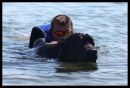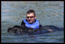 Originally bred to haul nets for fishermen, Newfoundlands are renowned for their water rescue abilities and Shadow thinks nothing of joining Royal Marine Commando Dave in the water for a cooling swim before climbing back aboard and heading for home.