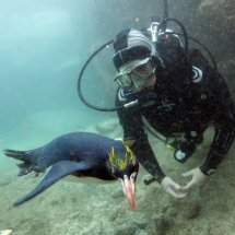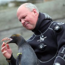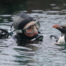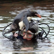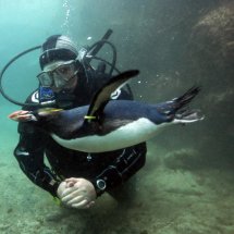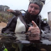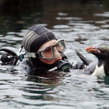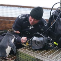 Professional scuba diver Derek Youd has a rather unusual dive buddy – an 18-month old macaroni penguin named Yoyo.