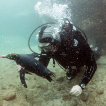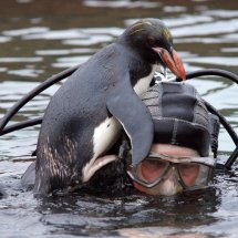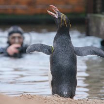 Normally found in the sub-Antarctic living on rocky islands like South Georgia and the Falklands, this particular youngster resides at the Living Coasts Zoo & Aquarium in Torquay, Devon, where suitably-qualified divers can enjoy the opportunity to swim with these fascinating creatures as participants in the UK's only Penguin Dive Experience.